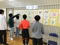 1年生、2年生教室廊下です。秋を感じる作品が展示されていました。