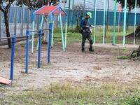 散布した日のみ念のため、カラーコンとスズランテープで児童の立ち入りを禁止しました。明日になれば大丈夫ということなので、1日の辛抱です。