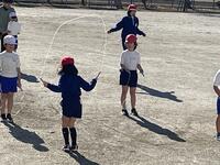 前跳びで長い時間跳び続ける持久跳びと、児童が技を選び挑戦するチャレンジ跳びの練習を行いました。