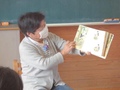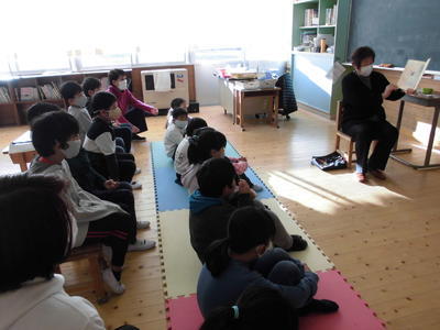 1・2年生は雪の絵本、3・4年生はサンタの絵本、5・6年生はウィルスの絵本を読んでいただきました。いつも、その時期に合った本を選んでくださるボランティアの方々。おかげで、子供たちは絵本に興味津々です。次は年が明けてから。どんな本を読んでくださるのか、楽しみです。