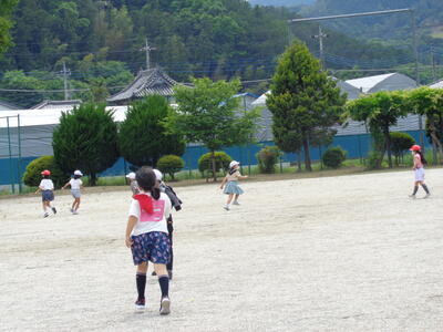 今日はお掃除のないロング昼休み。クラス遊びの日です。1・2年生は「いろおに」3・4年生は「三本線」5・6年生は「けいどろ」で遊びました。