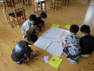 「これはここ。」「そこちがうよ。こっちだよ。」と話し合いながら完成させることができました。