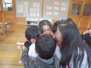 次に、なかよし班に分かれて仲間作りゲームをし、最後に6年代表児童による人権作文の発表を聞きました。