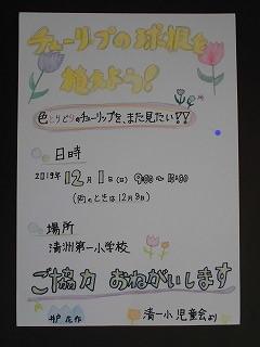 4月には花壇にたくさんのチューリップが咲き誇ることでしょう。その頃には子どもたちも清一小に戻り、元気に校庭を駆け回っていたらいいなと願っています。