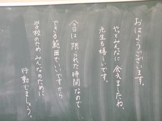 その日の全校集会で、今年度の運動会のスローガンだった『一致団結清一魂』の文字を黒板に書き、こんな時だからこそみんなで心と力を合わせて困難を乗り越えようと話し、最後には全員で心を込めて校歌を歌いました。