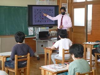 5・6年の教室の黒板にはこんなメッセージが ALTの授業も始まりました
