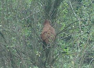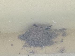 2階北側の軒下にある巣です。カメラを警戒した親鳥ににらまれてしまいました。