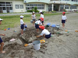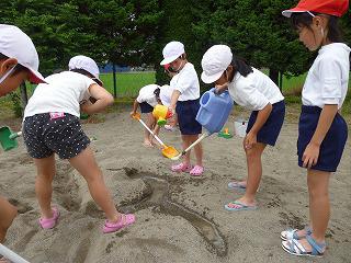 1・2年生は、図工の時間に砂場で造形遊びを楽しみました。