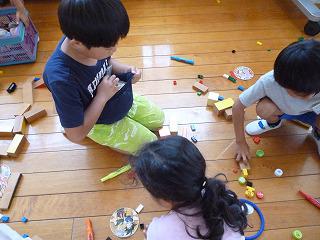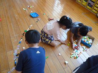 どこに水を流すか、どうすればスムーズに水が流れるか、ああでもないこうでもないと話し合いながら、川や山、トンネルのある壮大な作品を造り上げました。