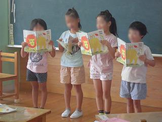 1冊目は、お遣いのお話。主人公の買い物をみんなで応援しながらお話を聞きました。