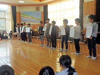 1年生から5年生へ、6年生からのメッセージが伝えられました。