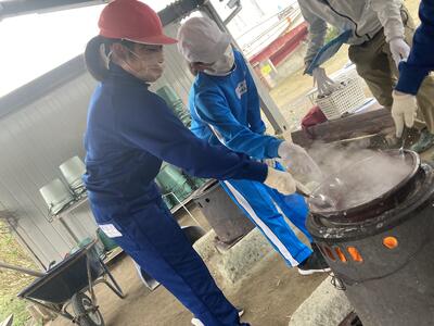 手際よくジャガイモの皮をむいたり、切ったりして、ジャーマンポテトやポテトサラダを作ることができました。
