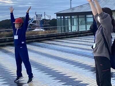 突然の大きなサイレンの音にも慌てず、落ち着いて放送を聞き、すばやく避難することができました。