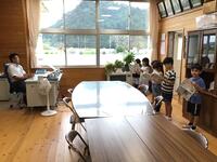 板荷の自然体験交流センターに到着後、入所式、仲間づくりゲーム、昼食、川遊びをしました。