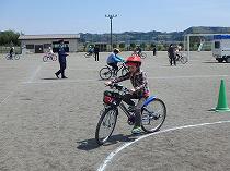 3年生から6年生は校庭で自転車の正しい乗り方を一人ずつ練習しました。