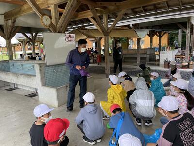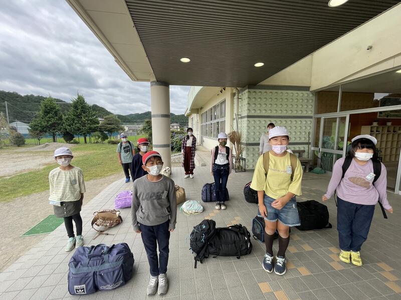 粟野地区の小学校が合同で、板荷の自然体験交流センターで自然生活体験学習をおこないます。