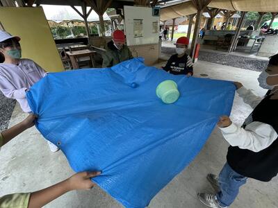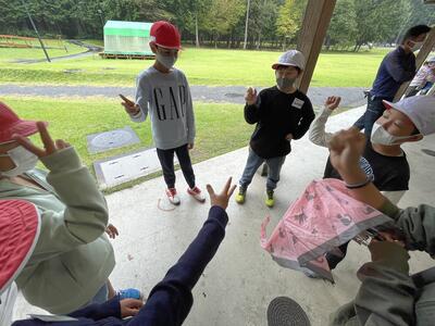 午後の最初の活動は、ウォークラリーの予定でしたが、雨が強いため、降りが弱まるのを待つ間に、仲間作りをしました。
