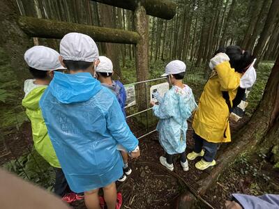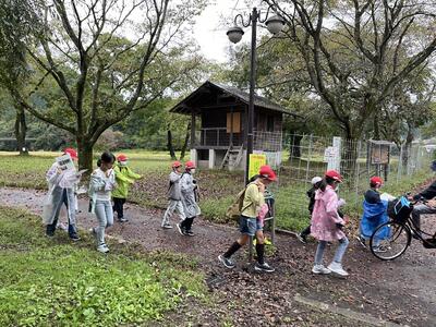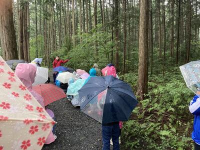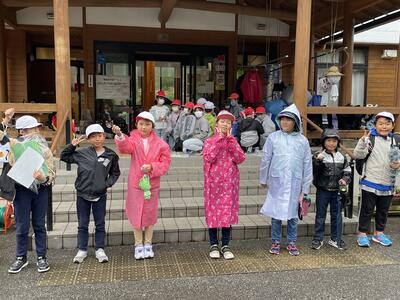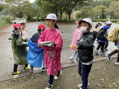 雨も小降りになったので、ウォークラリーを行いました。