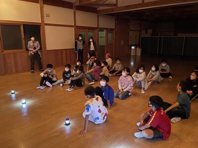 夕食の後は、ナイトハイクの予定でしたが、天候を考慮して、館内でのナイトゲームに変更になりました。