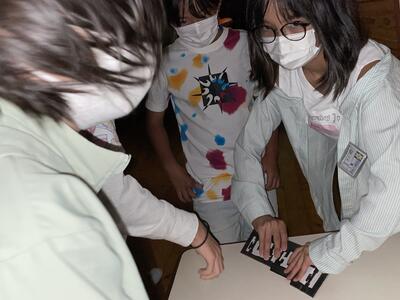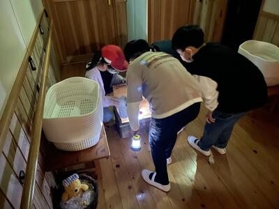 暗い館内を班ごとに探検し、課題クリアを目指しました。