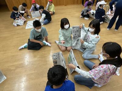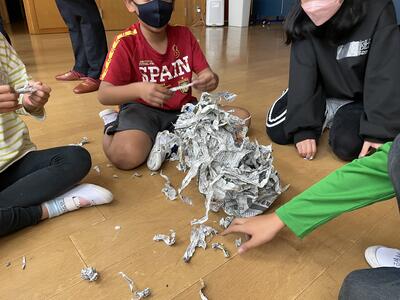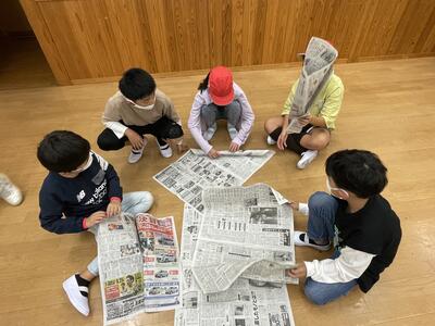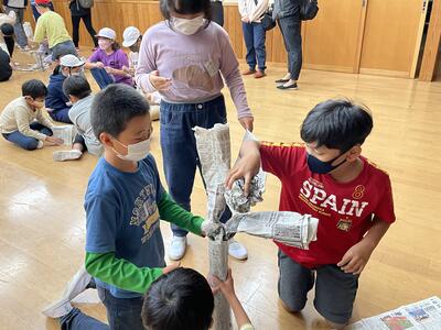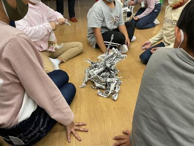 5枚の新聞紙でどれだけ高いタワーが作れるかを班ごとに競いました。
