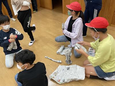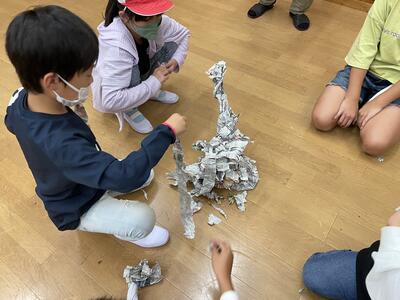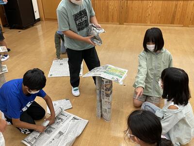 自然生活体験学習第1日 新聞紙タワー作り