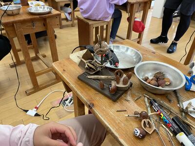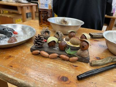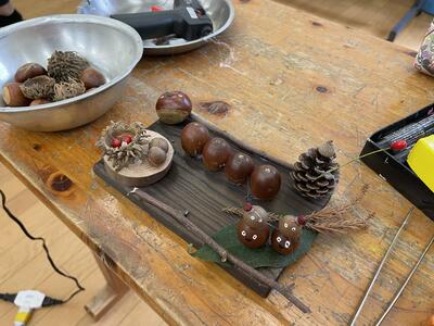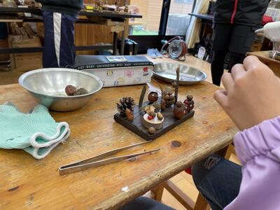●杉板焼き ●木の実クラフトの中から、事前に選んだ活動を一つ行います。