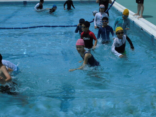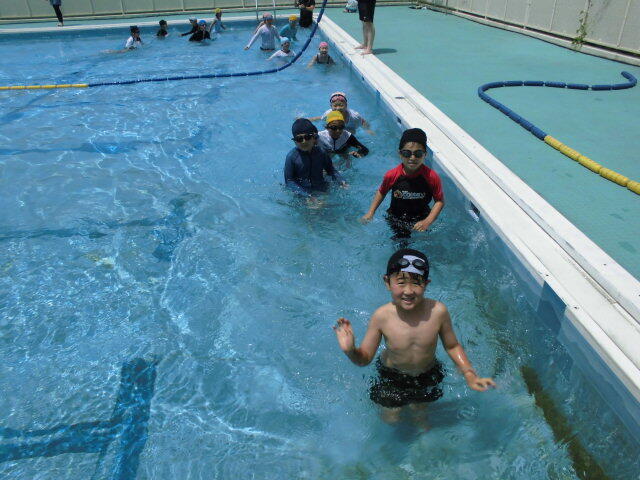 プール開き後には、全校児童で、水慣れを行いました。
