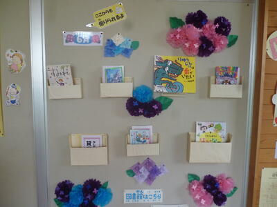 掲示物も、KLVや図書支援員の先生が一新してくださいました。