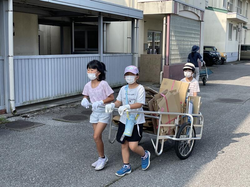 朝から暑い日となりましたが、地域や保護者の皆様のご協力ののもと、資源物回収を行いました。