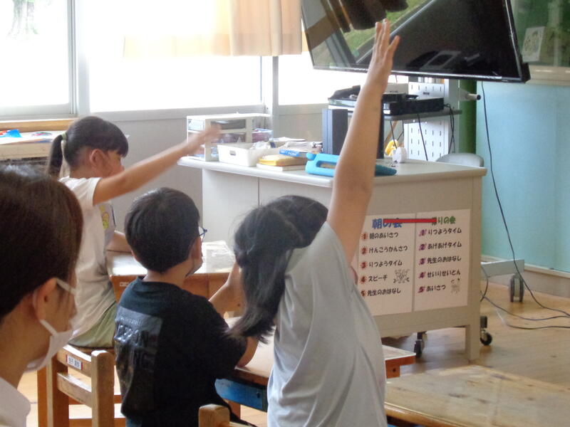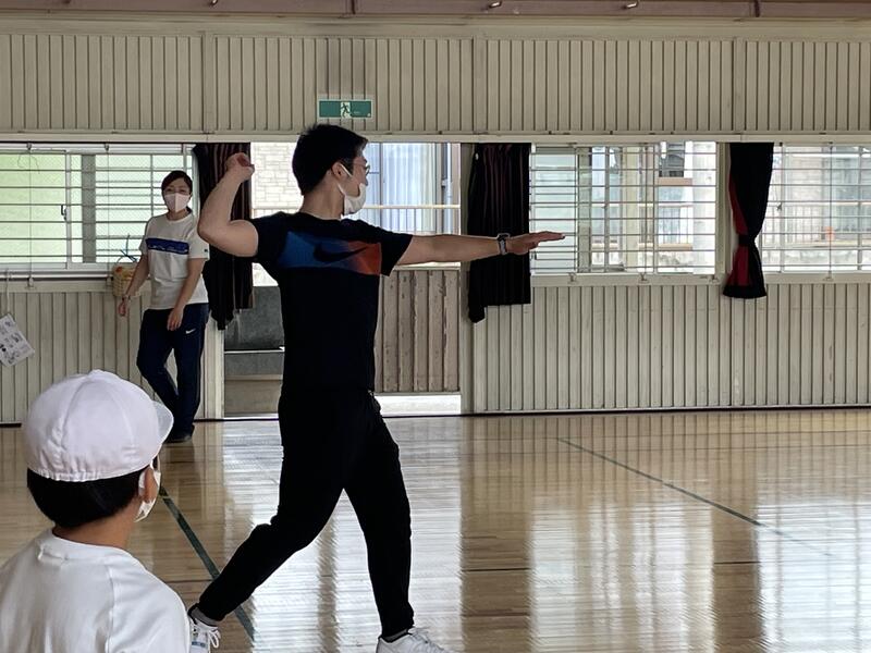 児童は、説明をよく聞き教わった動きを試していました。