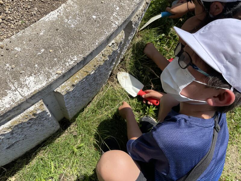 休み時間になると、虫かごを持って生き物さがしが始まります。