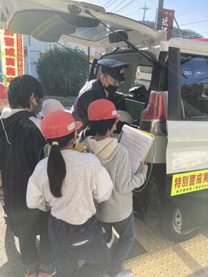 3年生は社会科で安全を守る仕事の学習を行っています。そこで清洲駐在所の須藤さんにお話を聞くことにしました。パトロールや巡回連絡だけでなく、事件や事故があれば現場にかけつけるなど、駐在所のお仕事は大変そうです。警棒は身につけているだけでなく、通在所のカウンターやパトカーにも常備してあり、危険と隣り合わせのお仕事であることも再確認できました。私たちの安全を守って下さっていることに感謝の気持ちも持つことができました。