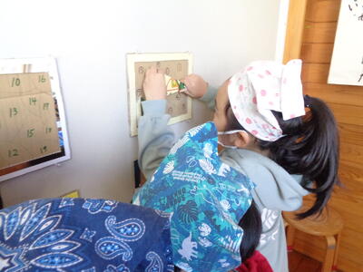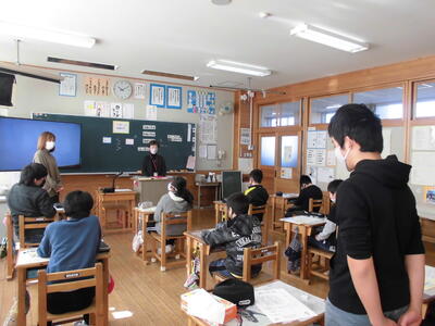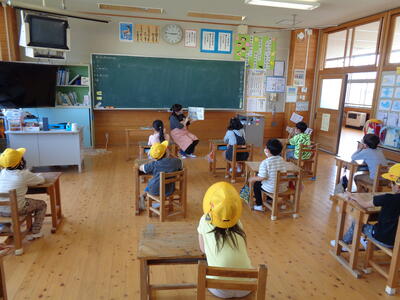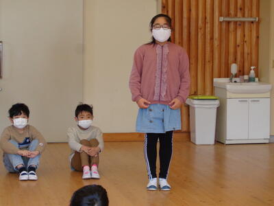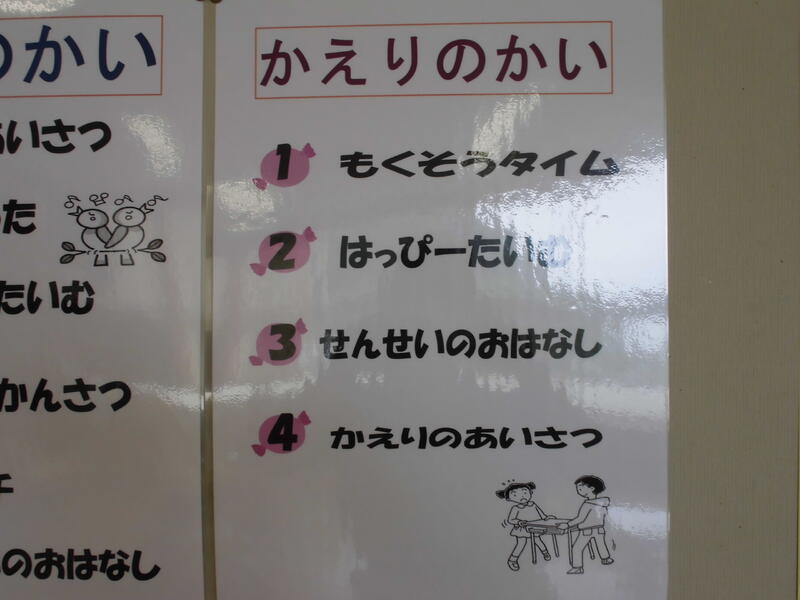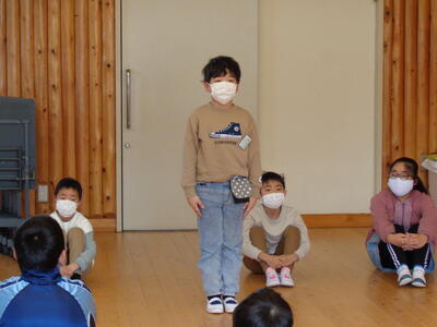 写真は、帰りの会の「はっぴーたいむ」の一場面です。