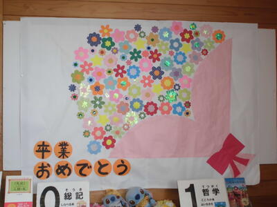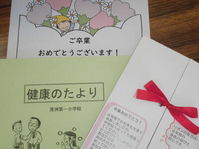 先日の送る会で、下級生から色紙やメダル、写真立てや小物入れなどたくさんのプレゼントをもらった6年生。おめでとうのプレゼントは他からも。