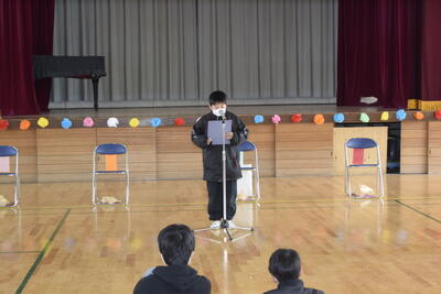 5名の卒業生の凛とした姿。体育館に響き渡った別れの言葉。体育館一杯に卒業生の希望と在校生の感謝の気持ちがあふれていました。最上級生としてリーダーシップを発揮し下級生の憧れだった卒業生。学校を巣立っていくその一人一人の背中を、幸あれと願いを込めて見送りました。