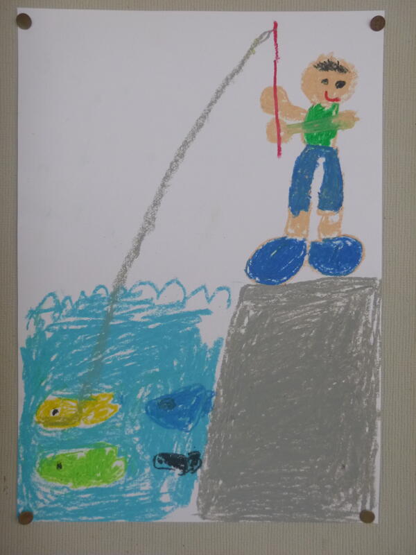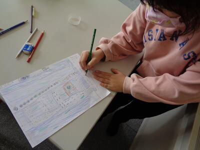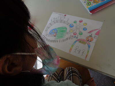 2年生が、図工の授業で「好きなことなあに」を題材に絵を描きました。