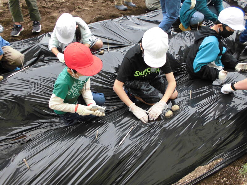その後、各班ごとにジャガイモの種いも植えを行いました。