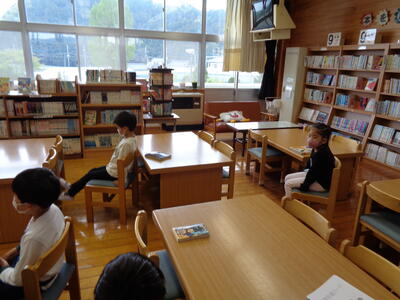 最後に、本の読み聞かせもしていただきました。これで、1年生も図書室の使い方はバッチリです。今度は、休み時間に利用してみてください。図書委員さんが待ってるよ。