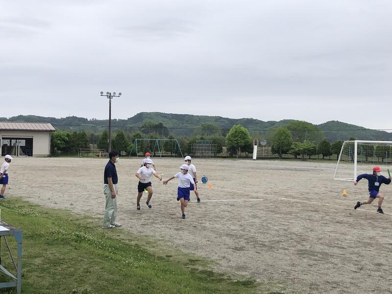 リレーでよい記録を出すためには、バトンパスでスピードを落とさないことに気づき、協力して練習に取り組みました。