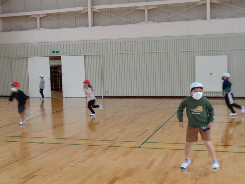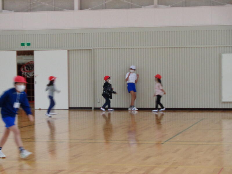 今日の昼休みにペア学年遊びを予定していましたが、あいにくの雨のため体育館で全校遊びを行いました。