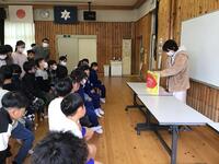 業間の時間に全校児童が食堂に集まり、夢中になって聞き入っていました。