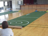 ユニカールとは、ユニバーサルカーリングの略で、だれもがどこでもカーリングを楽しむことができるようにと考えられたスポーツです。カーペットの上でストーンを滑らせます。
