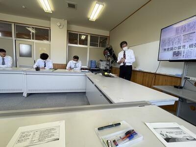 上都賀教育事務所学校支援課長様にお越しいただき、本校の第2学年担任の授業を参観していただきました。