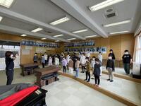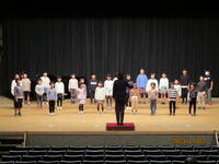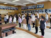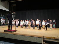 これまで、音楽室で練習を行ってきましたが、今日からは、体育館で本番と同じ並び方での練習です。