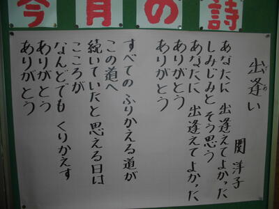 今年度最後の読み聞かせが行われました。6年生にとっては、小学校最後の読み聞かせ。本を読んでもらう楽しみをじっくり味わっていたようでした。小学校での思い出がまた一つ増えました。来週は卒業式。図書室前の掲示も、卒業を祝う掲示になっています。