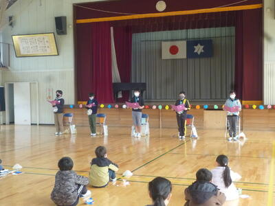3月8日には、「6年生を送る会」を行いました。卒業を間近にした6年生へ感謝し、みんなで楽しいひと時を過ごそうと、5~3年生の子たちが中心になって企画・運営をしました。
