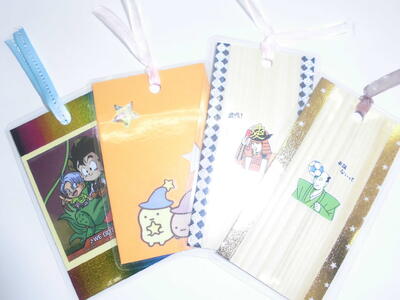 養護教諭からは、成長の記録のプレゼント。リボンの長さは6年間で伸びた身長と同じ長さになっています。図書支援員の先生からは、6年間の読書記録とブックカバーが贈られました。そして、KLVの方からは、素敵なしおりのプレゼント。