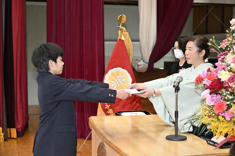 5名の卒業生の凛とした姿。体育館に響き渡った別れの言葉。体育館一杯に卒業生の希望と在校生の感謝の気持ちがあふれていました。最上級生としてリーダーシップを発揮し下級生の憧れだった卒業生。学校を巣立っていくその一人一人の背中を、幸あれと願いを込めて見送りました。