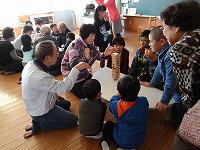 縦割り班ごとに、積み木、トランプ、ドミノ、ジェンカを一緒にやりました。